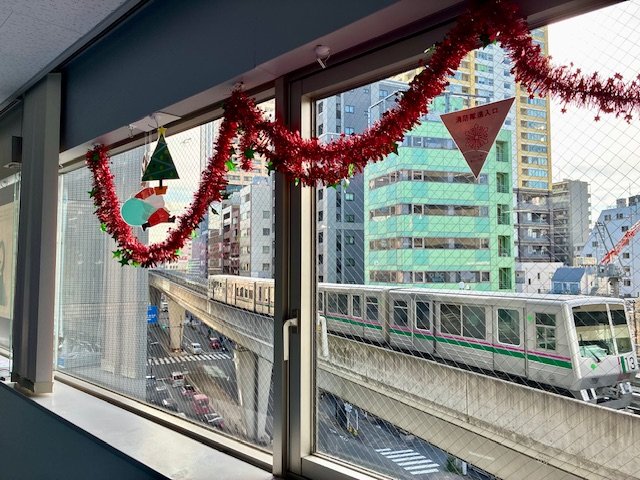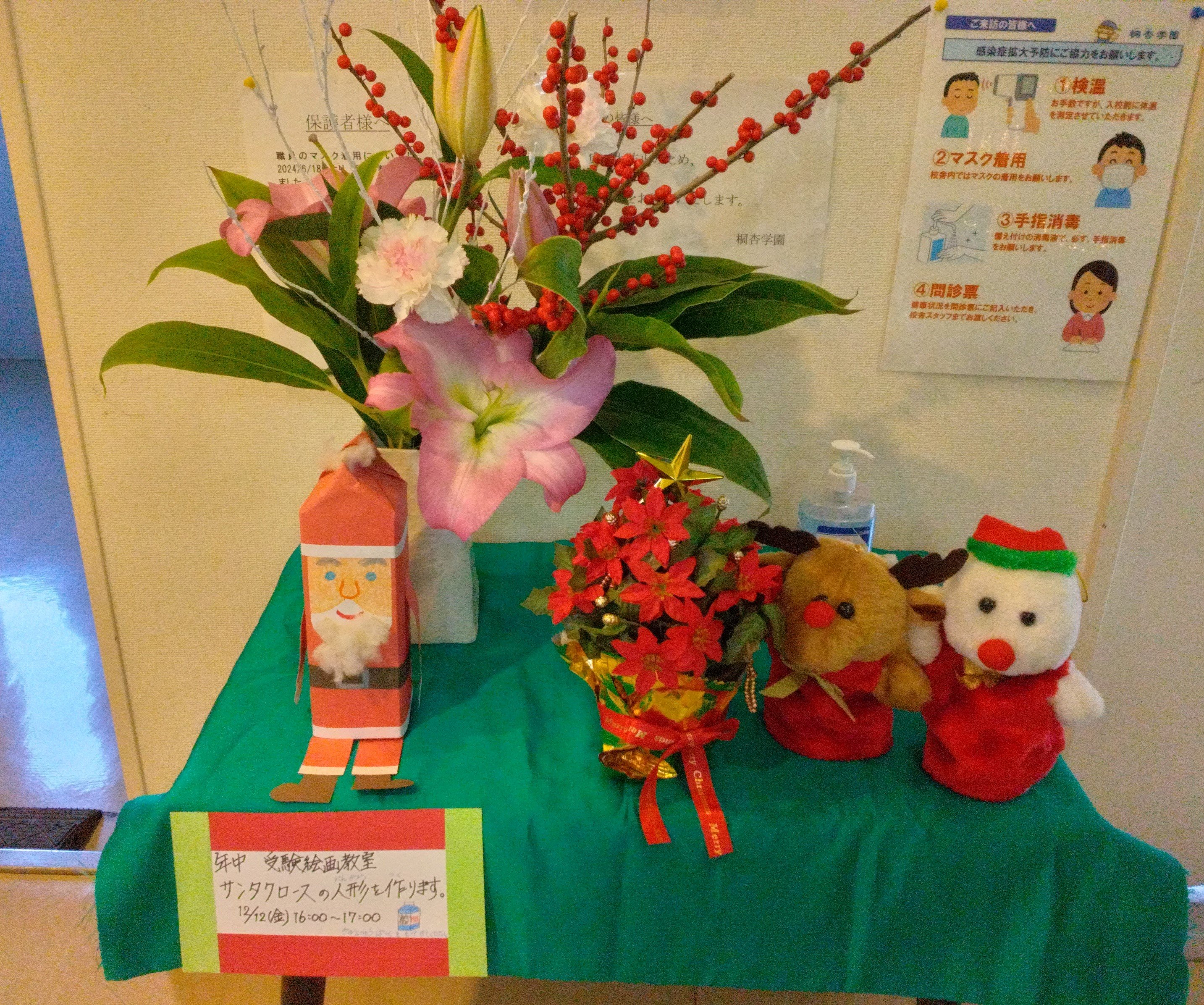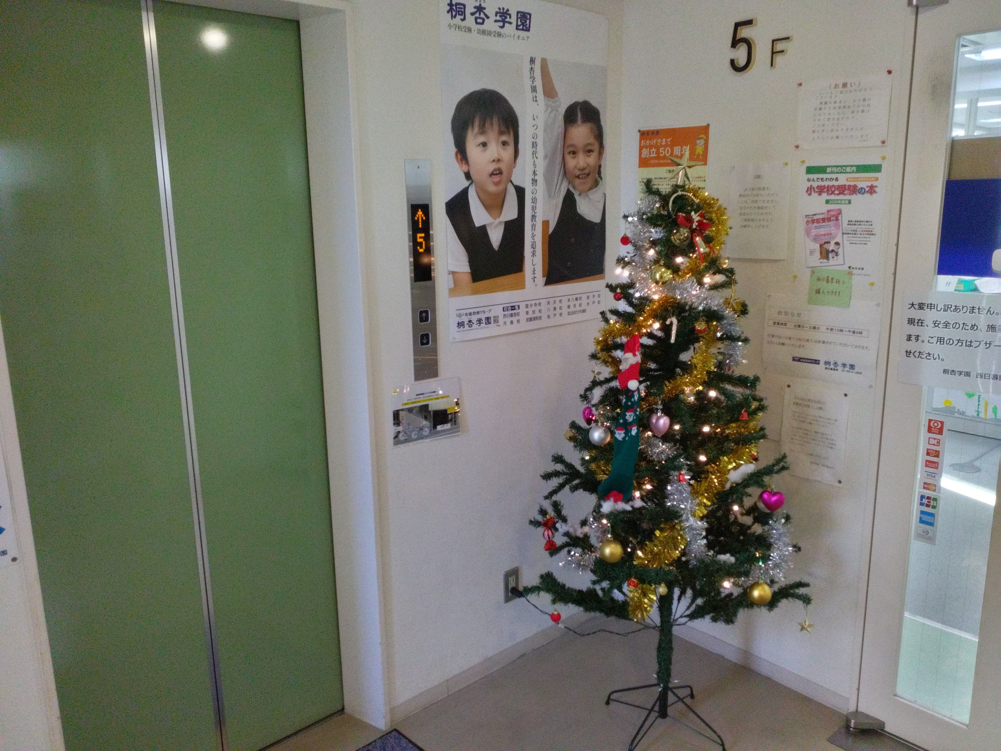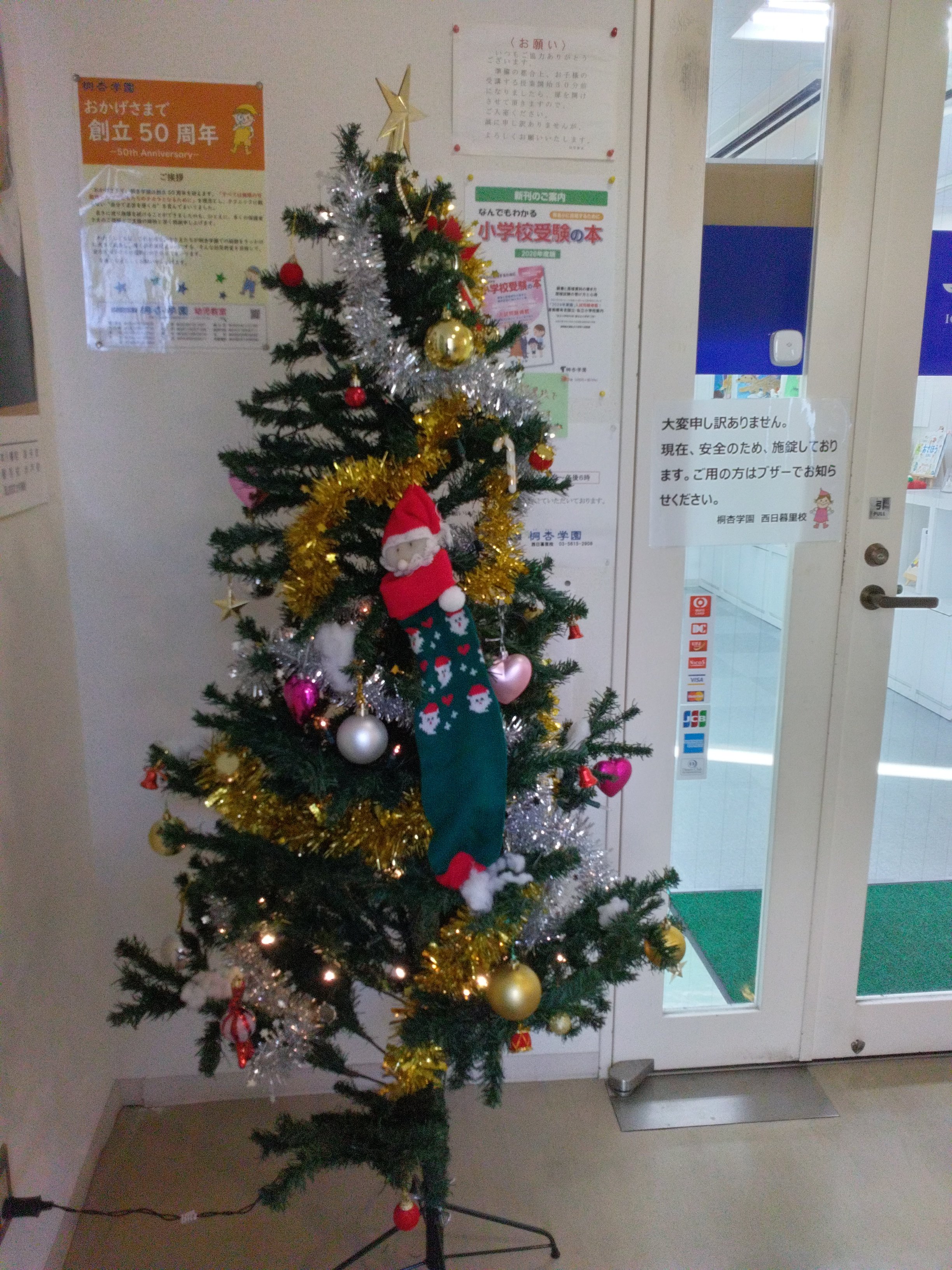 只今、西日暮里校は、クリスマスツリーやクリスマスリースなどの飾り付けで
